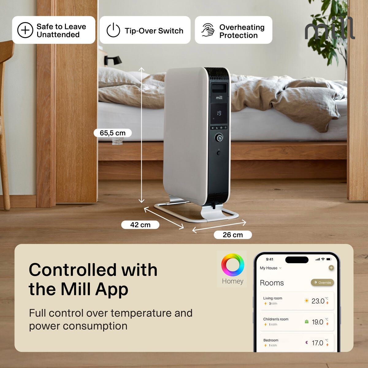 • Mill Gentle Air 2000 W – fristående element för rum upp till 28 m2.