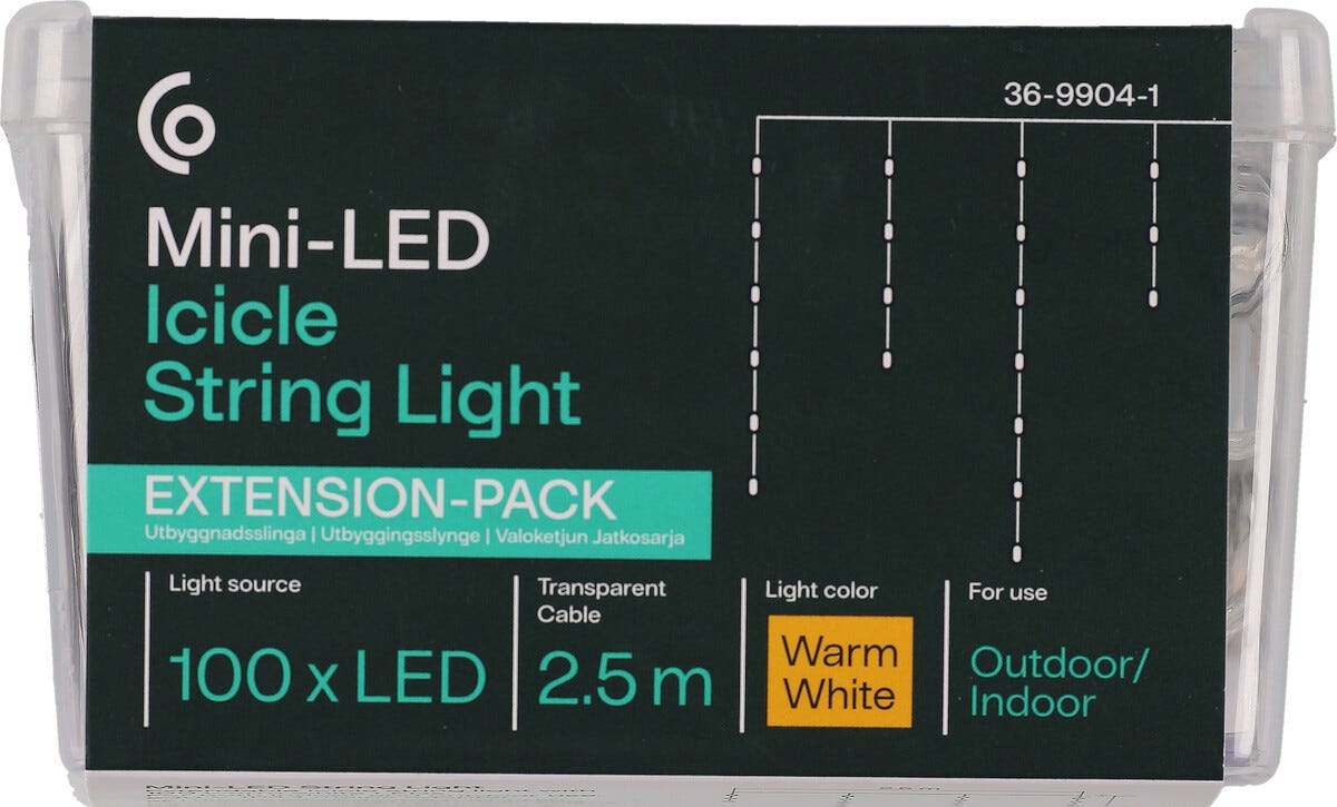 • Förläng din varmvita Mini LED istappsslinga – ansluts direkt till startslingan (säljs separat).