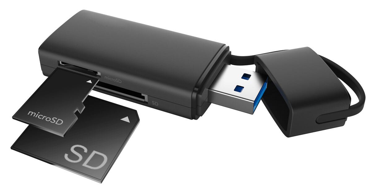 • Smidig minneskortläsare för dina microSD- och SD-kort.