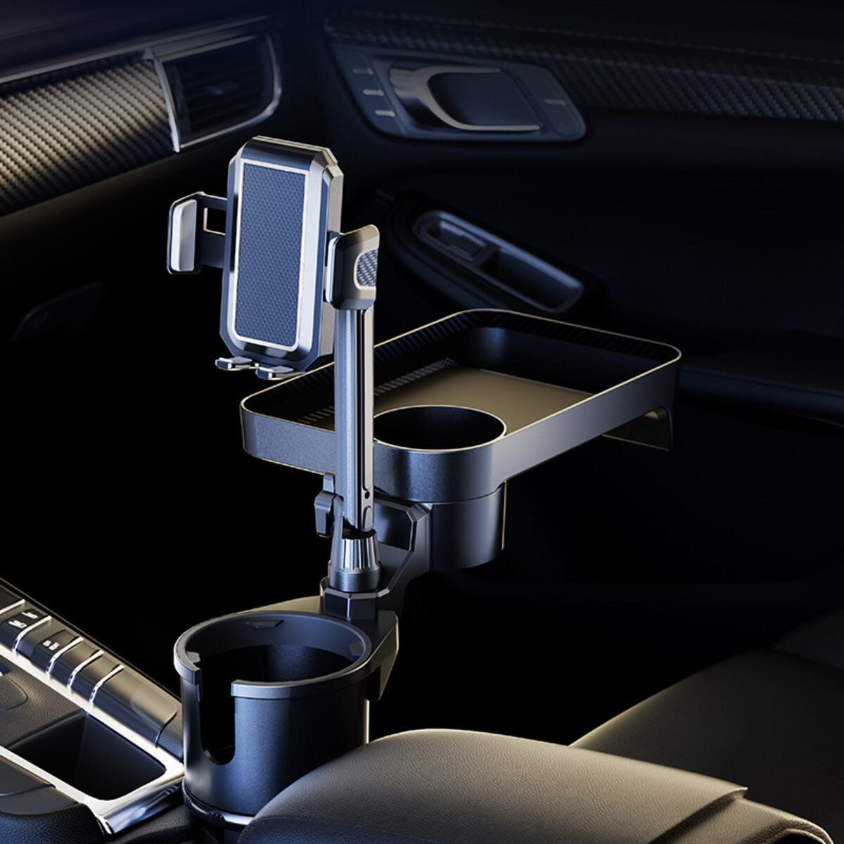• Stabil hållare för mobil och justerbar matbricka med plats för kopp eller snacks.