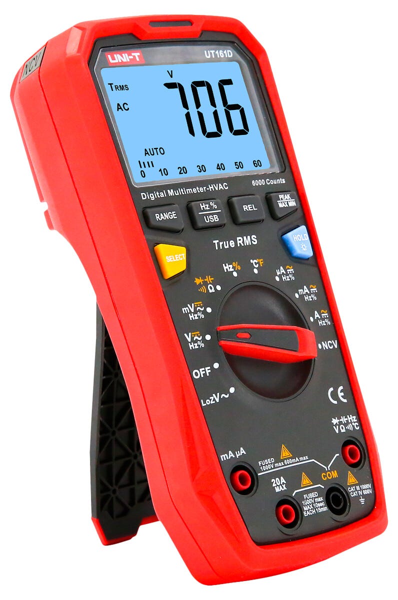 • Multimeter UNI-T UT161D – tydlig och exakt digital avläsning på bakgrundsbelyst display.