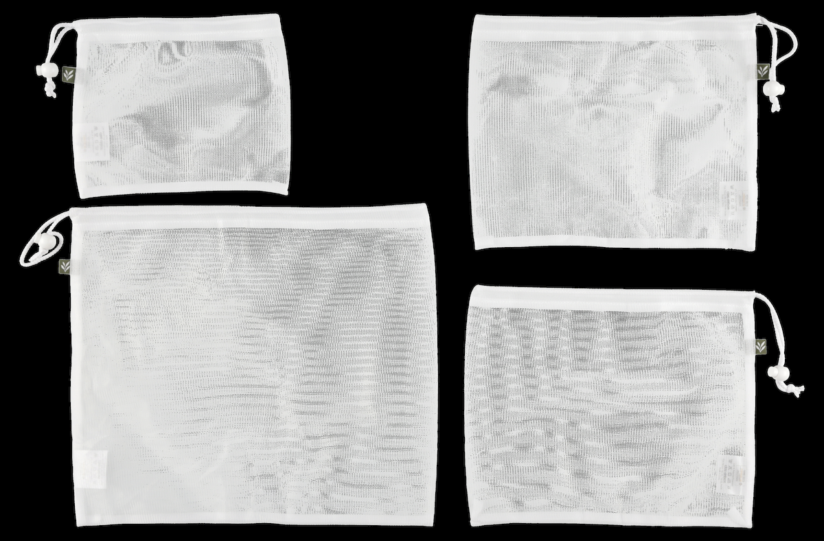 • 4-pack med tre olika storlekar återanvändbara påsar.