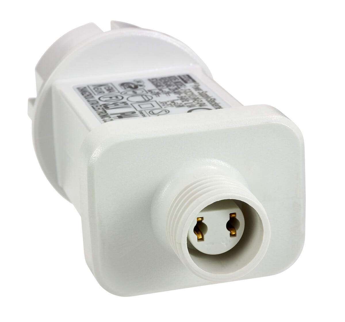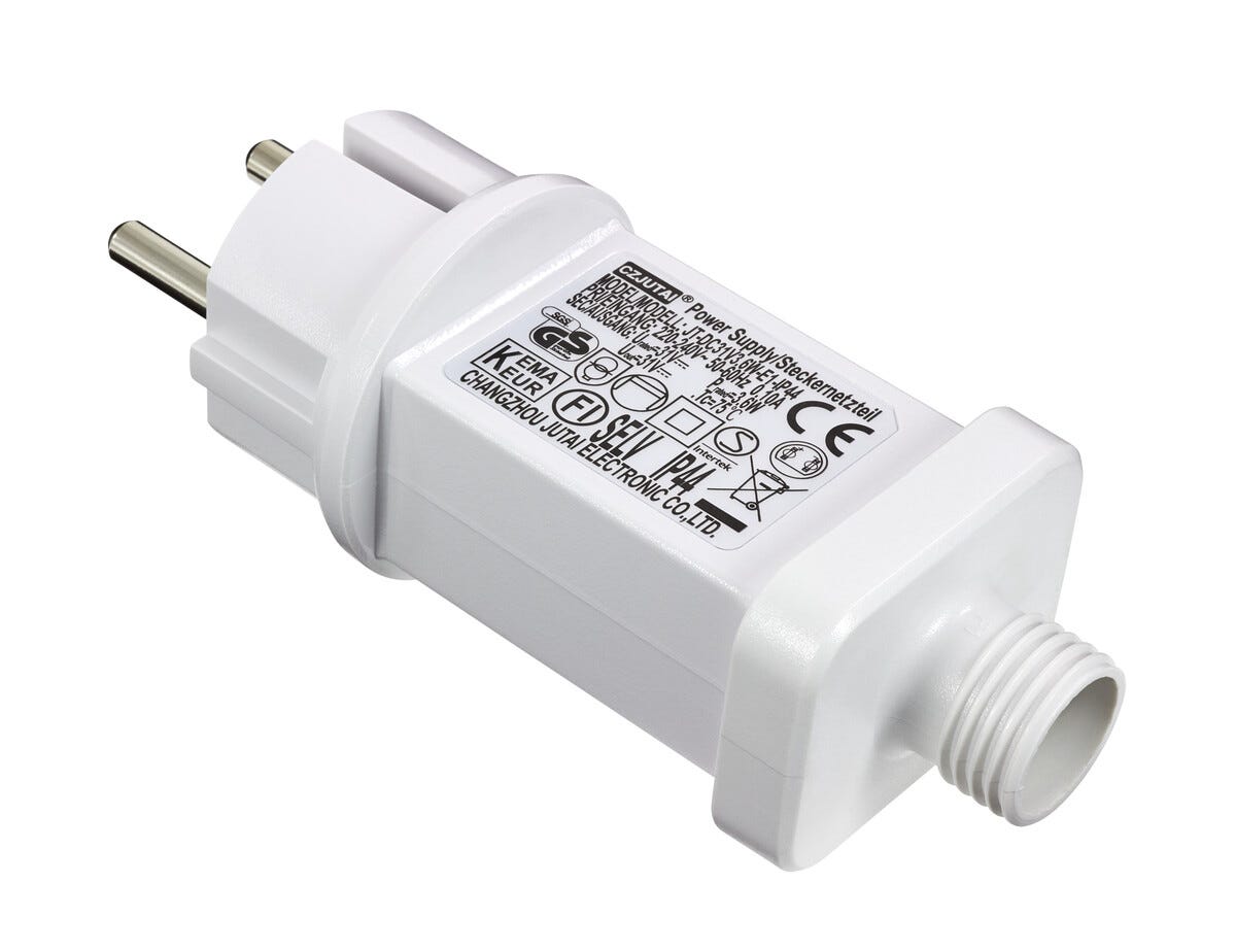 Transformator till bl.a. istappslinga LED (36-6752) och nyare modell av stjärngardin Lisa (36-4181). Anslutning med 2 runda stift.