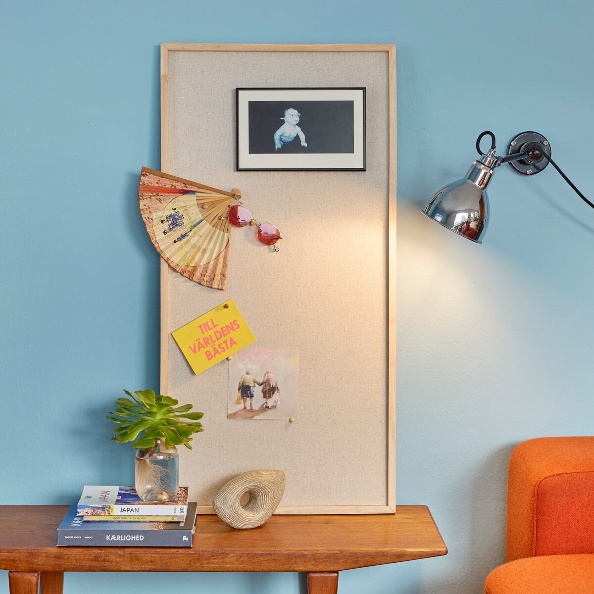 • Naga anslagstavla kork med träram – klädd i ofärgat linnetyg.
