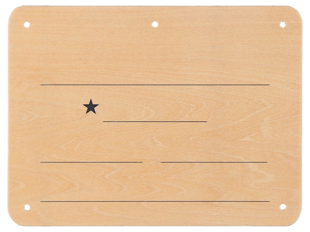 • Namnskylten är tillverkad i lätt plywood med förborrade hål.