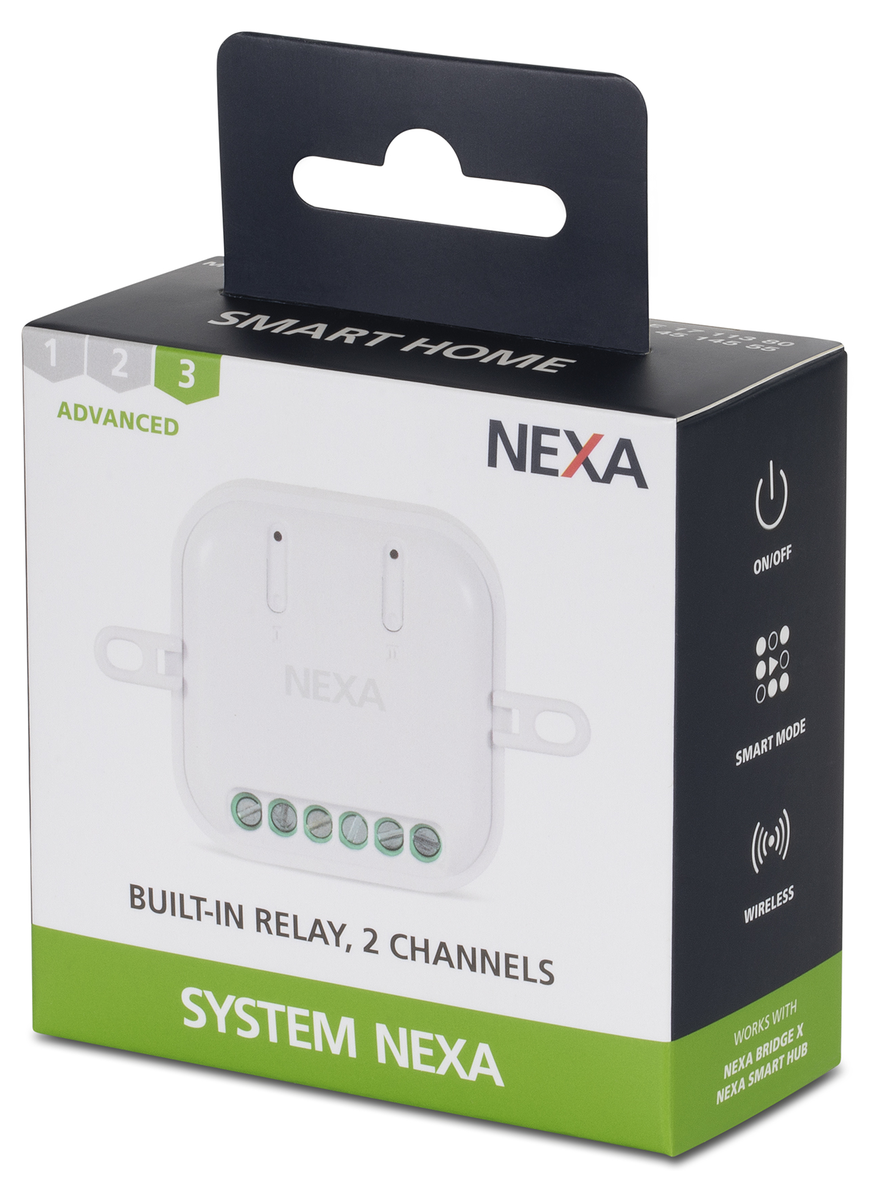 • Nexa-mottagaren har 2 kanaler för fjärrstyrning av belysning, elradiatorer m.m.