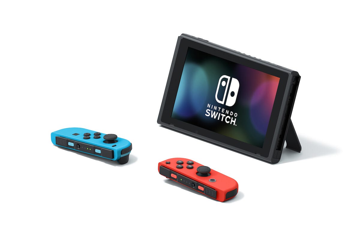 • Stationär konsol i mobilt format – med färgglada Joy-Cons.