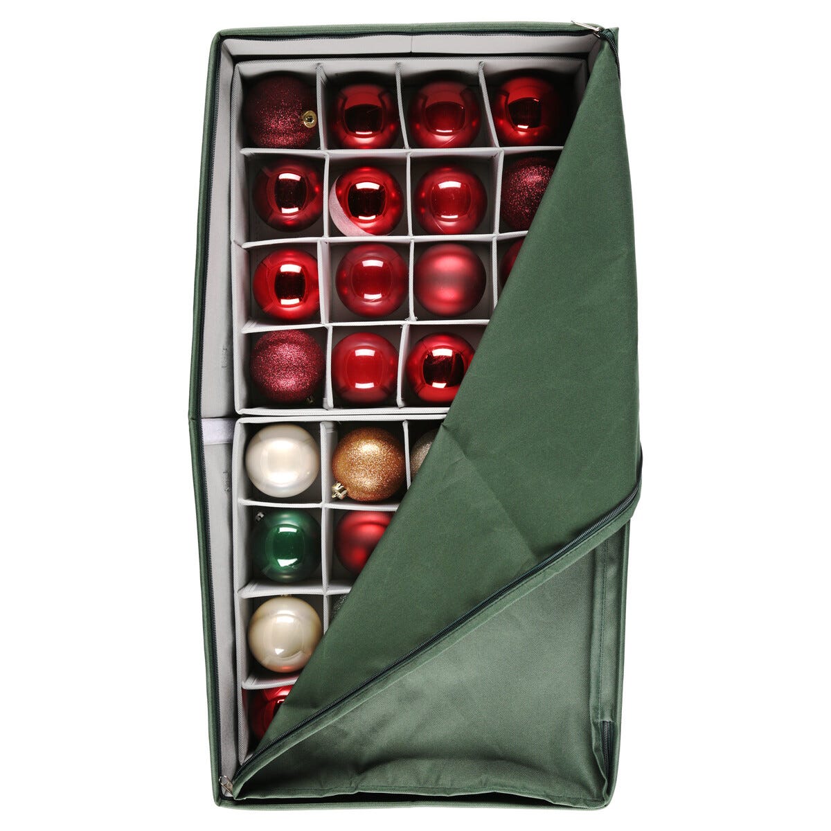 • Lätt att öppna helt för att komma åt alla julgranskulor.