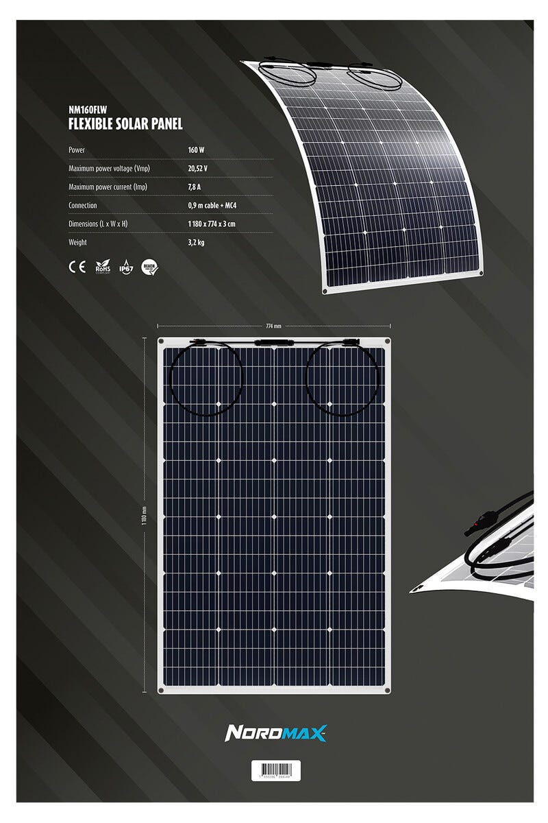 Nordmax flexibel solpanel 160 W, NM160FLW