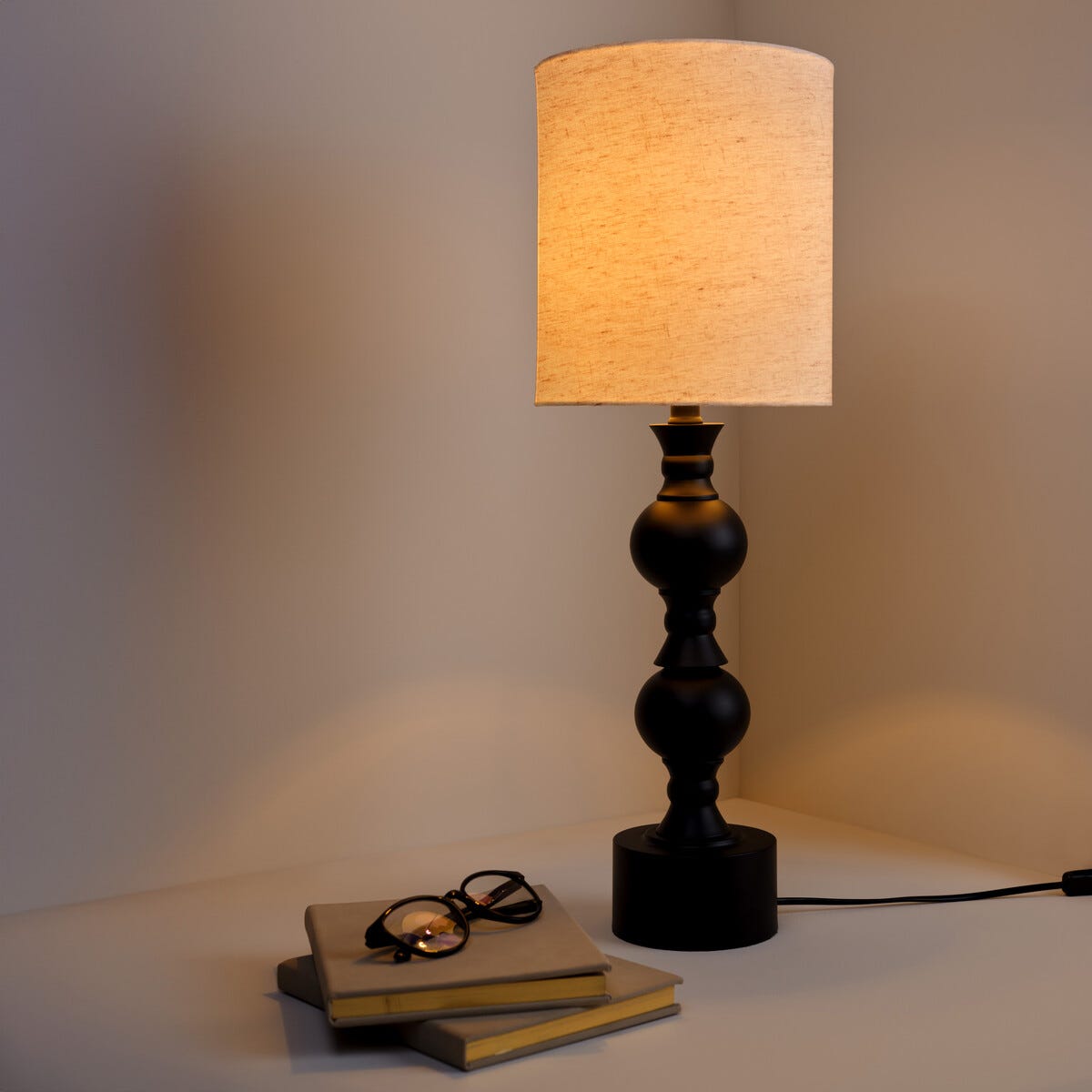 • Northlight Vera – en hög, formad bordslampa med metallfot och tygskärm.