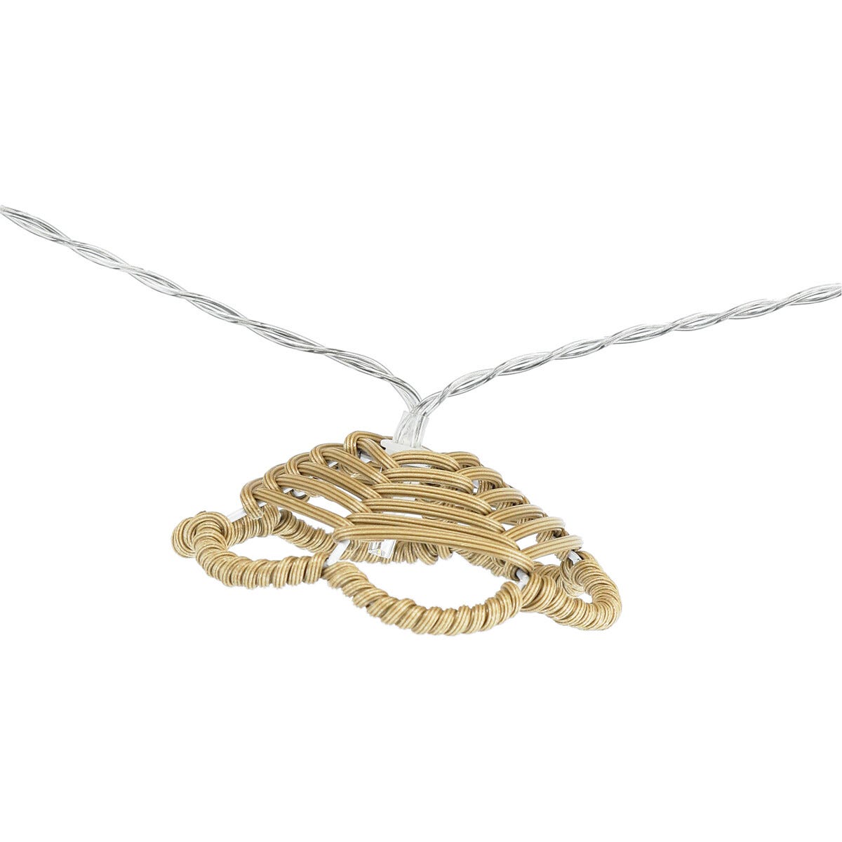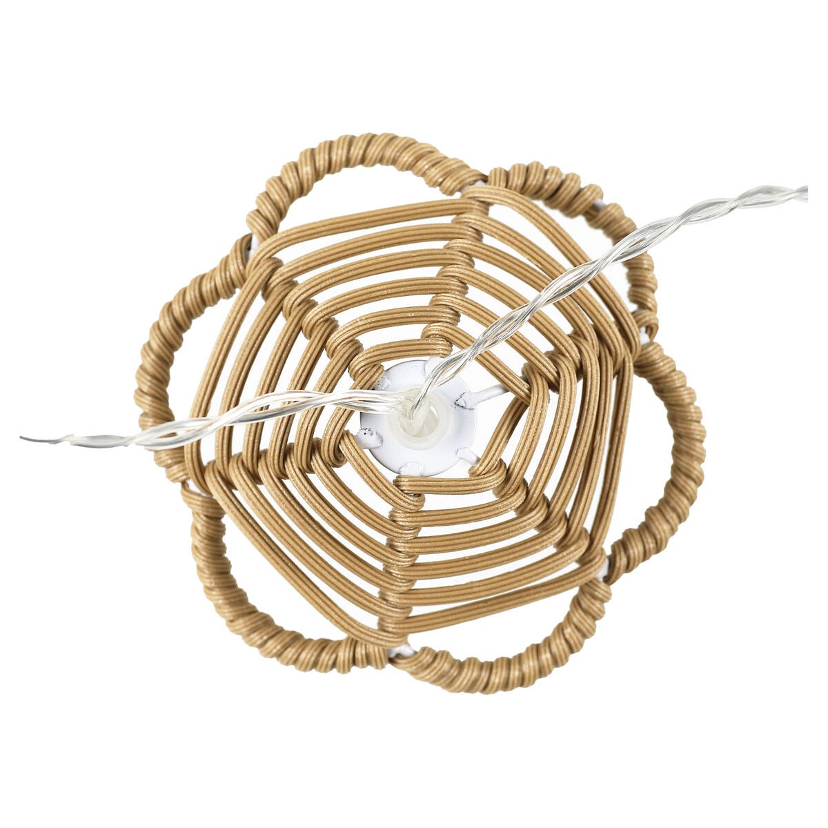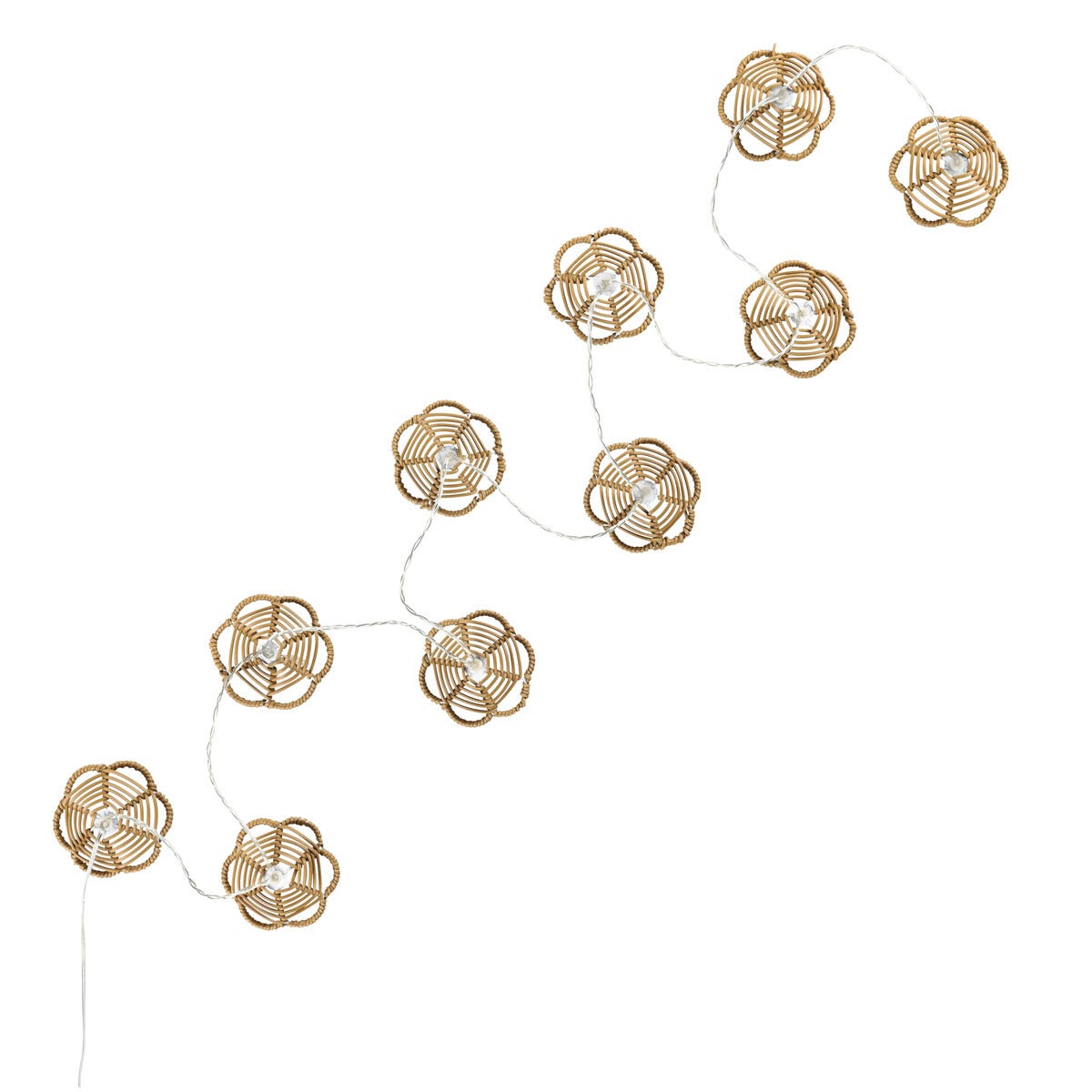 • Solcellsdriven ljusslinga med blomformade lampskärmar i konstrotting.