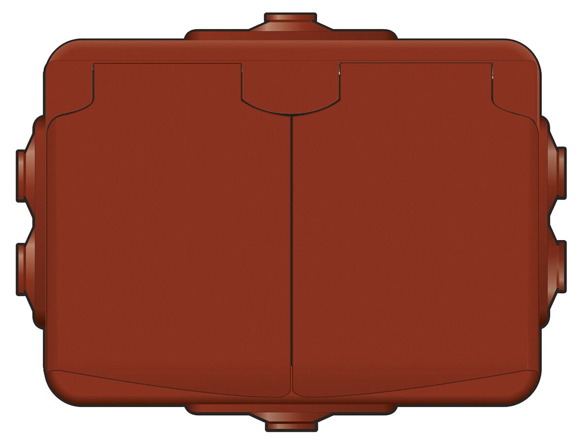 • Dubbla, jordade uttag med lucka – faluröd (RAL 3009) för utomhus.
