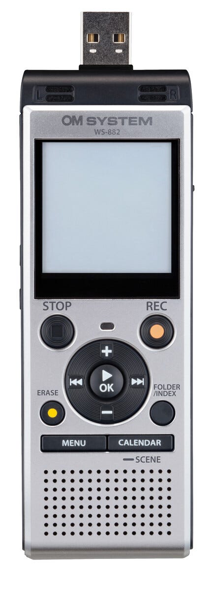 • OM System WS-882 – en lättanvänd, batteridriven diktafon med USB.