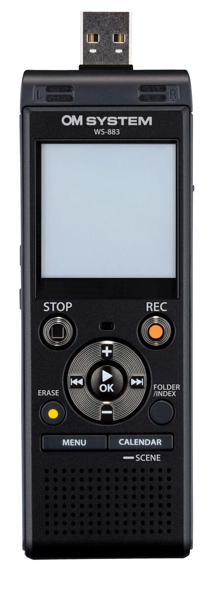 • OM System WS-883 – en lättanvänd, laddbar diktafon med USB.