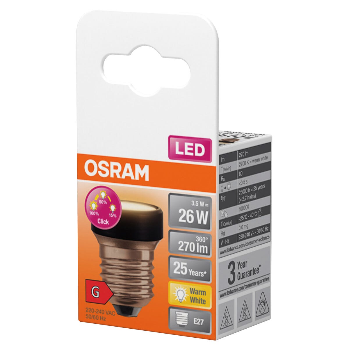 • Osram E27 LED-lampa med 3-stegs dimfunktion via strömbrytare.