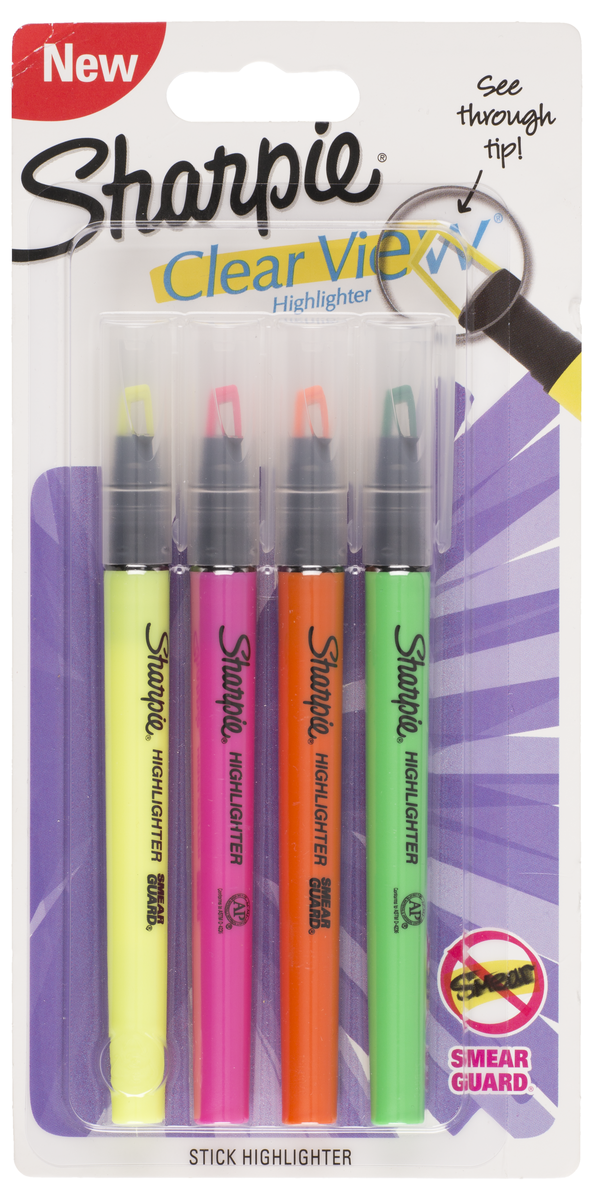Överstrykningspennor Sharpie Clear View, 4-pack
