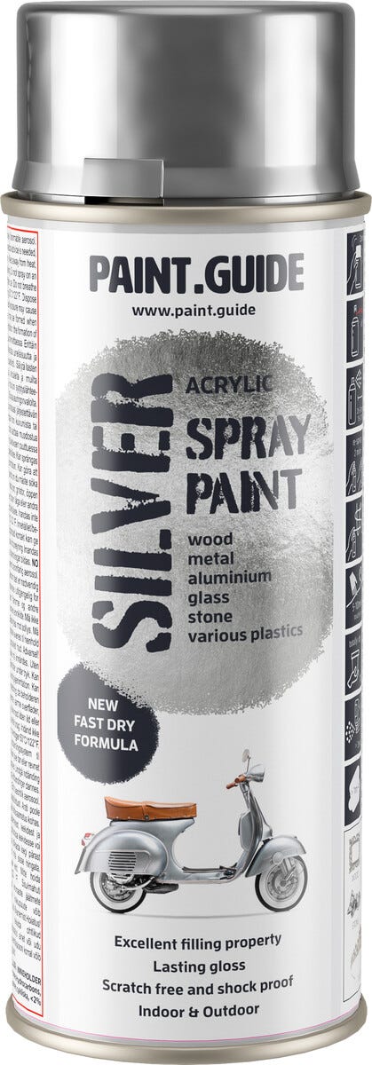 • Paintguide Metallic sprayfärg – akrylfärg med metallisk glans.