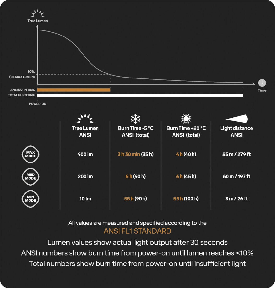 • Pannlampa Silva MR400 med upp till 85 meter räckvidd.