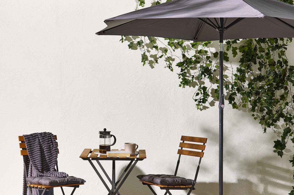 • Tåligt parasoll i polyester med vev och tiltfunktion.