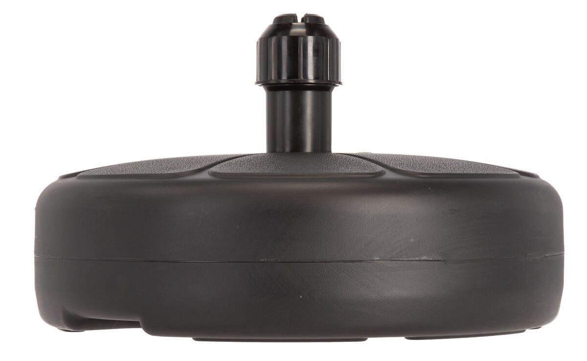 • Parasollfot i plast som fylls med vatten för att ge tyngd.