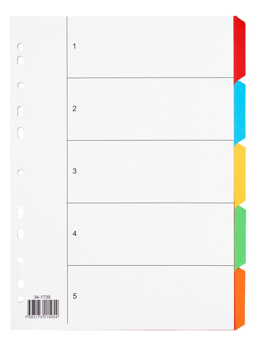 • Ett nummerregister med 5 stora färgkodade flikar.