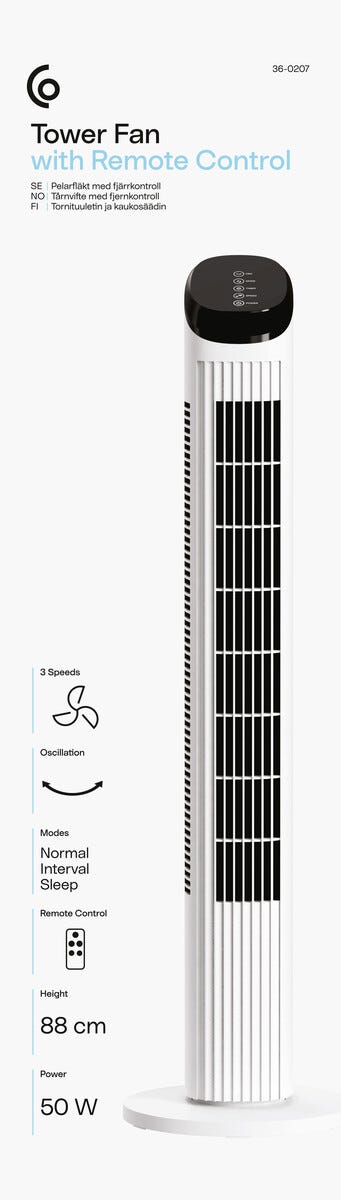 Pelarfläkt med fjärrkontroll 50 W, vit, 88 cm