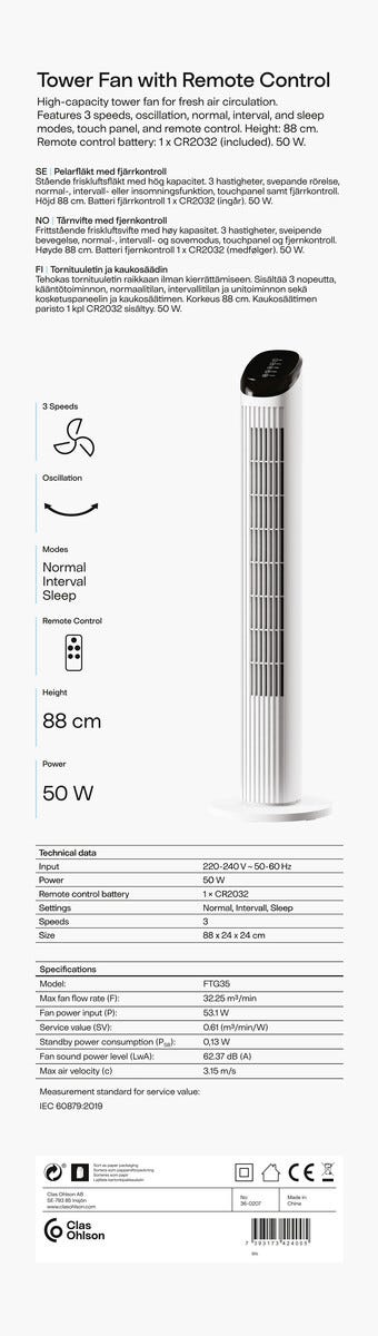 • Golvfläkt med timer och 3 driftlägen för anpassad komfort.