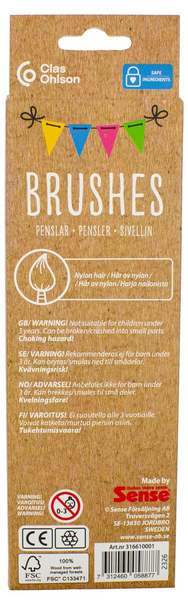 • Penslar i olika storlekar med stabilt träskaft – för barn från 3 år.