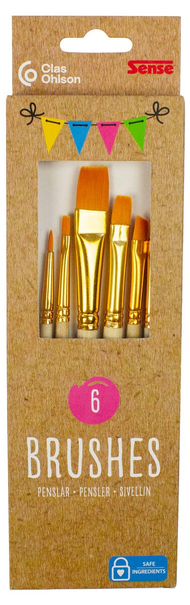 • Penselsetet med 3 raka och 3 runda penslar i olika storlekar.