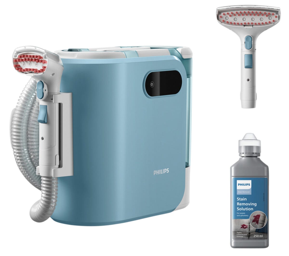 • Effektiv fläckborttagning på mjuka ytor som soffor, mattor och bilbarnstolar.