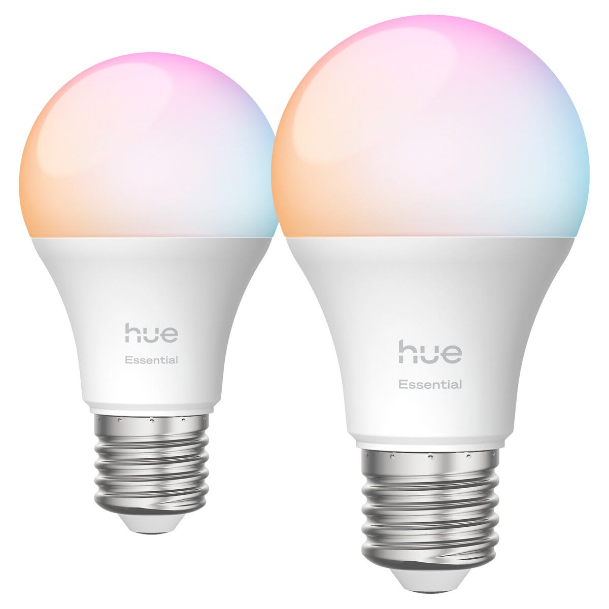 Philips Hue Essential E27 LED 8 W, vitt och färgat ljus, 2-pack