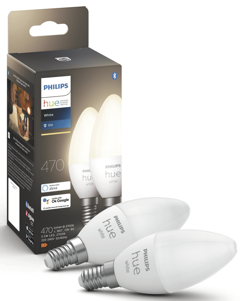 Philips Hue White LED-lampa 5,5 W E14 2-pack, Bluetooth