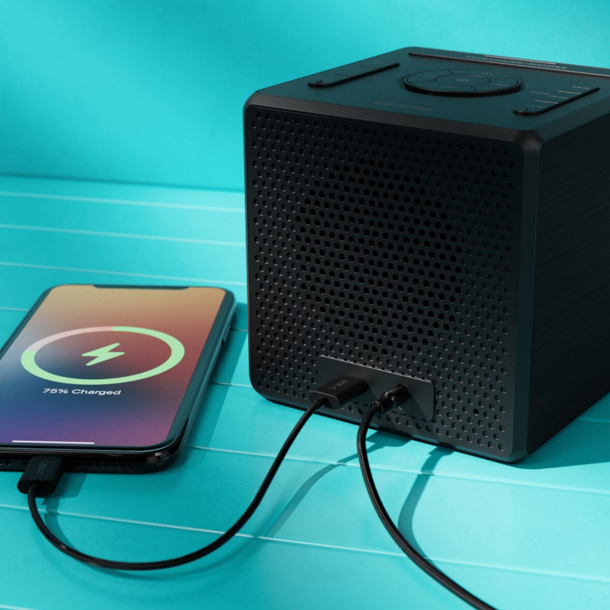 • Philips R4600 – en USB-C-port laddar mobilen med 5V/2A under natten.