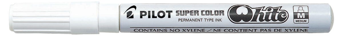 • Pilot Super Color White vattenfast märkpenna – för glas, plast, gummi och metall.
