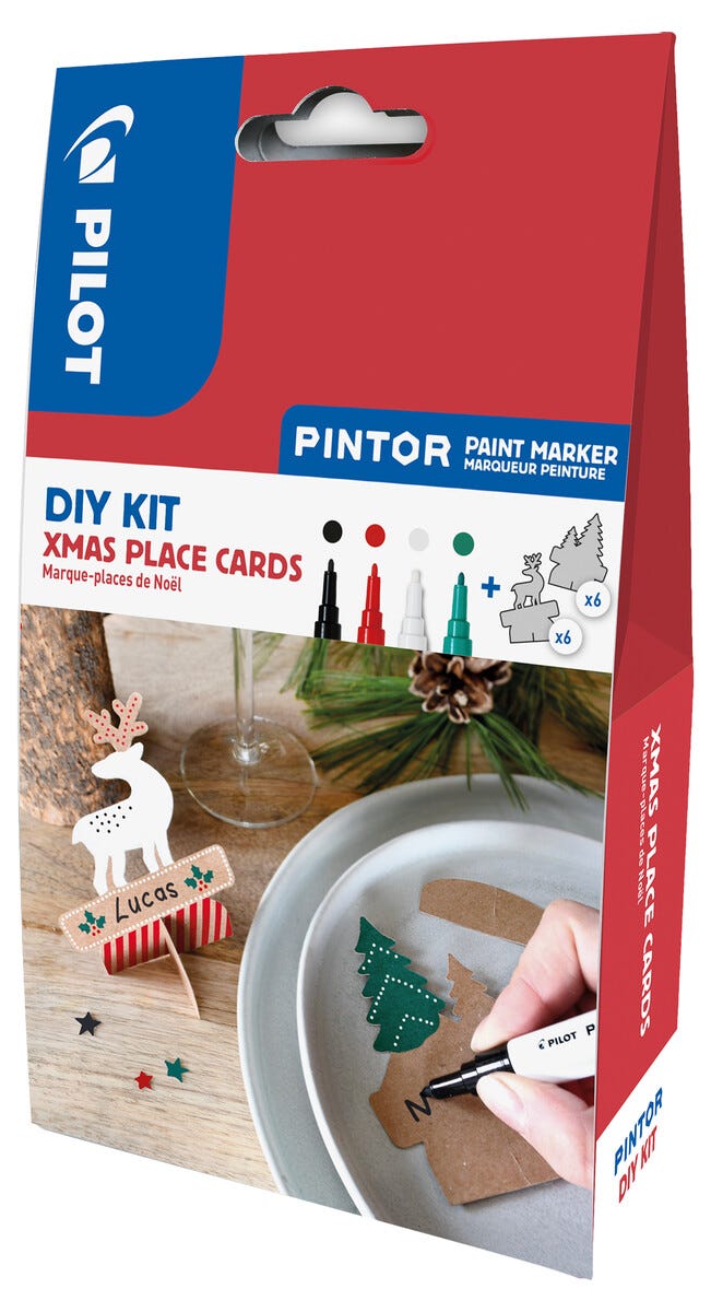 Pilot placeringskort jul, set med 4 pennor