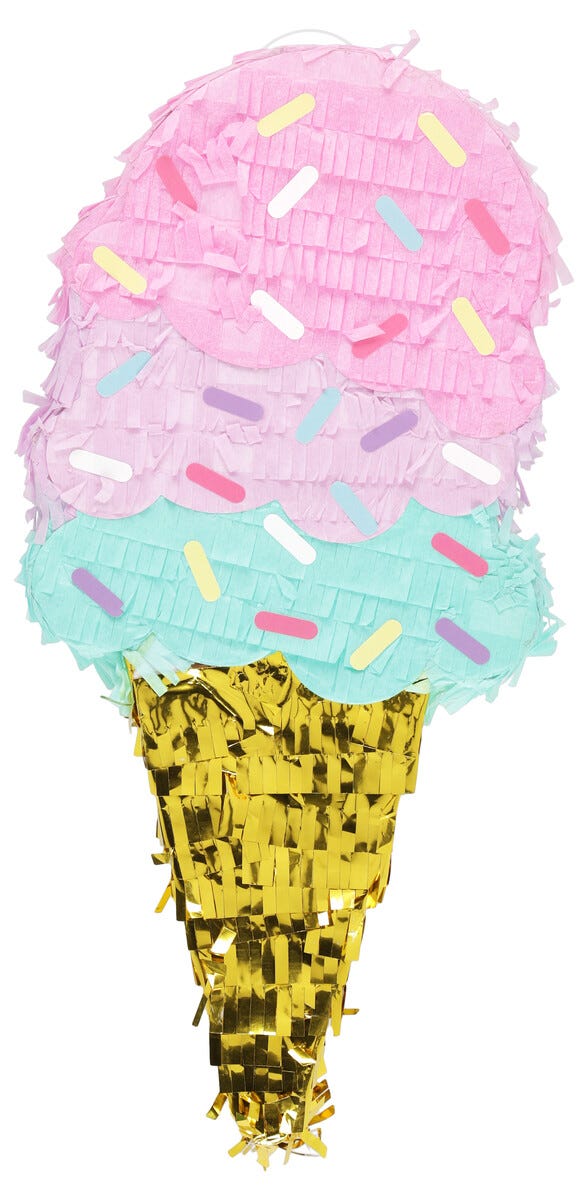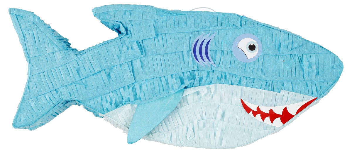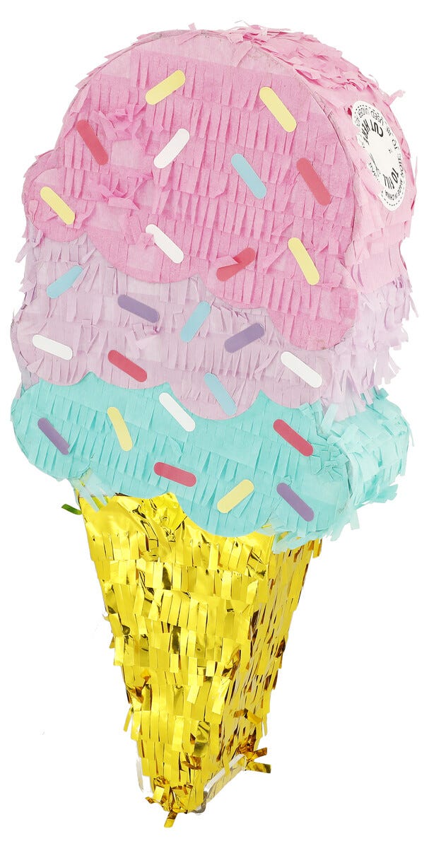 • Pinatan finns i olika varianter: Rymdskepp, ananas, glass, haj och regnbåge.