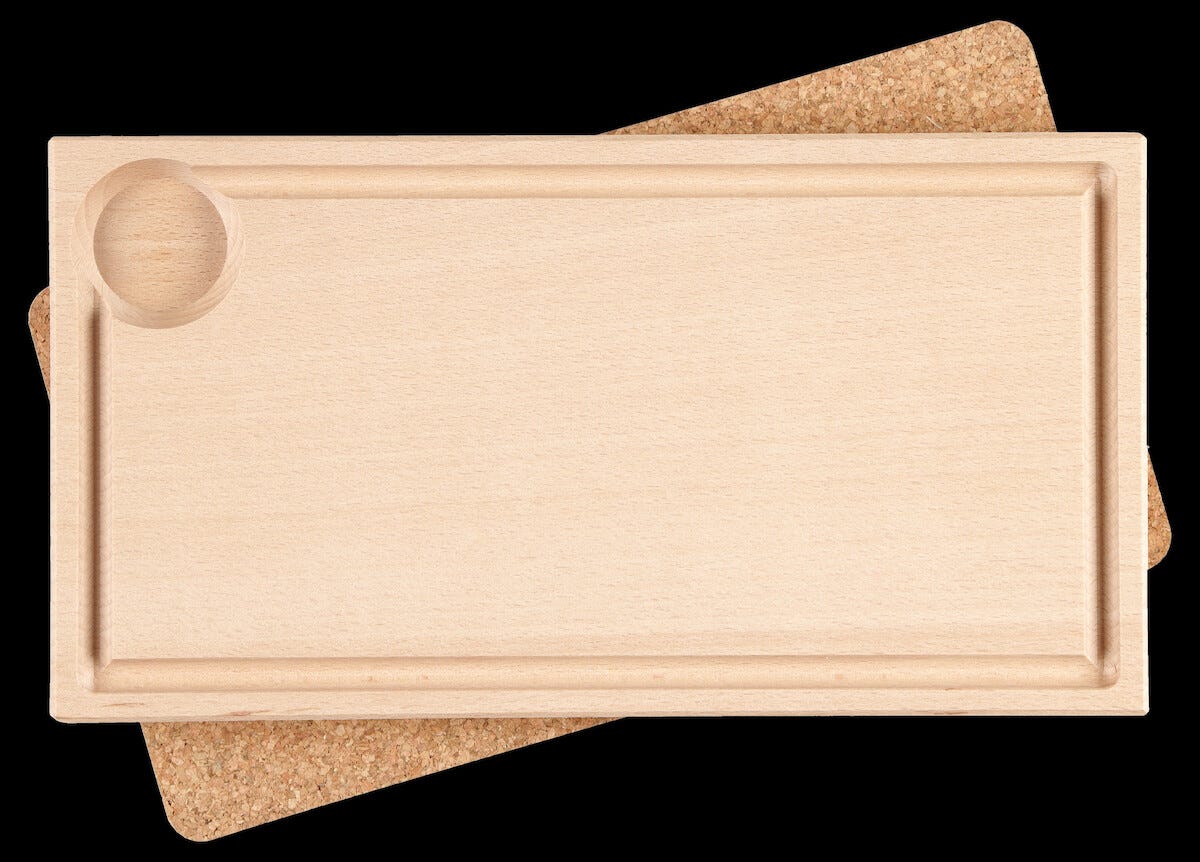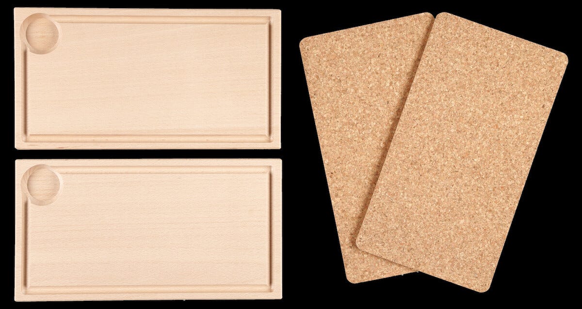 • Korkunderläggen förenklar serveringen av de heta plankorna.