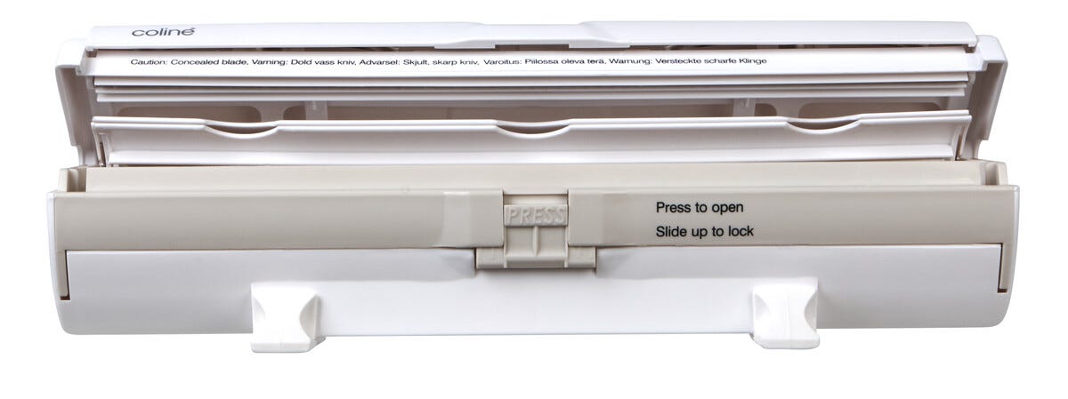 • Plastfoliehållare – klipp plastfolien med ett tryck på locket.
