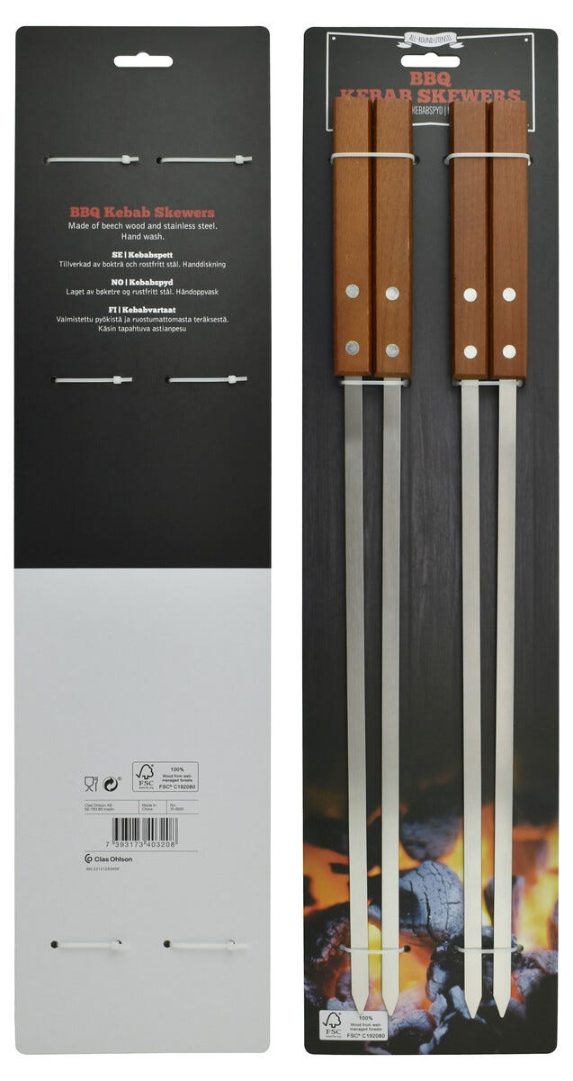 • Breda kebabspett av rostfritt stål – lätta att rengöra efter grillningen.