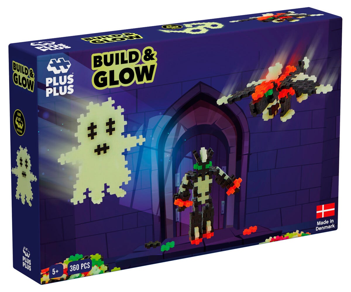 • Plus Plus Build and Glow Rymden – 360 delar i olika färger, vissa självlysande.