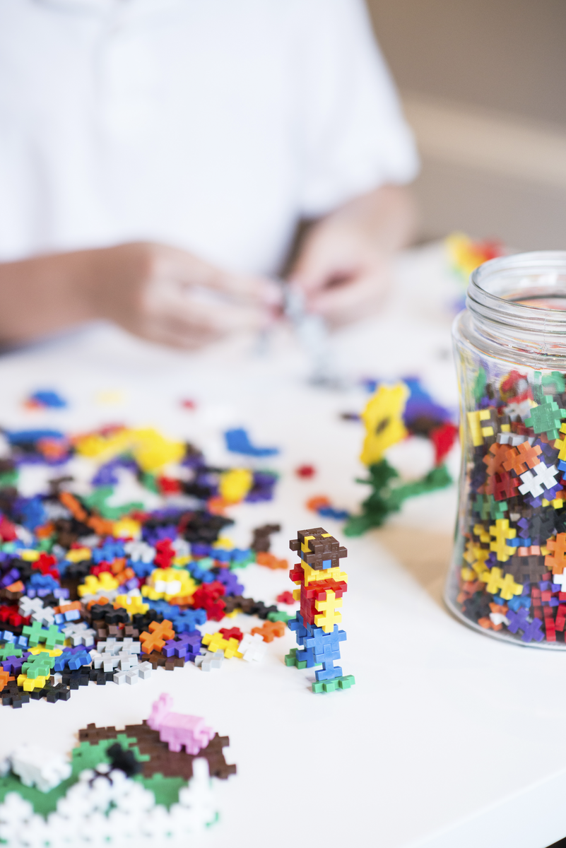 • Små plusformade byggklossar som utvecklar finmotorik och kreativitet.