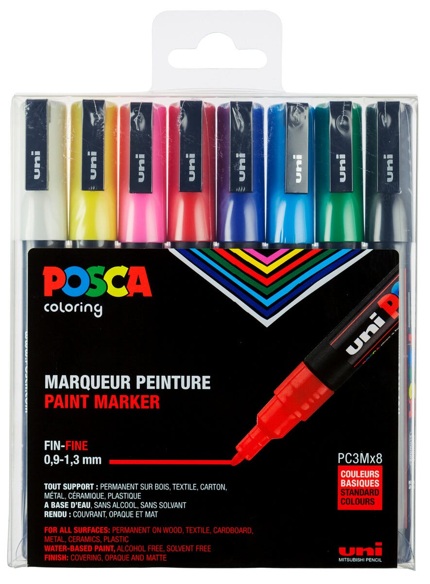 • Uni Posca Markers PC-3M – set med Poscapennor i storlek 0,9–1,3 mm.