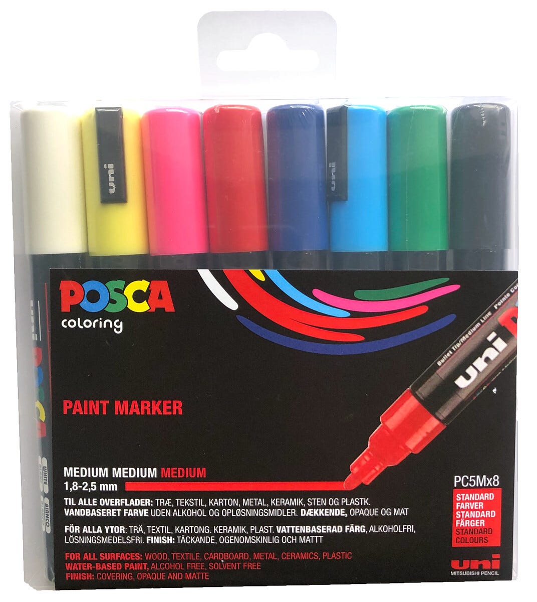 • Uni Posca Markers PC-5M – set med Poscapennor i storlek 1,8-–2,5 mm.