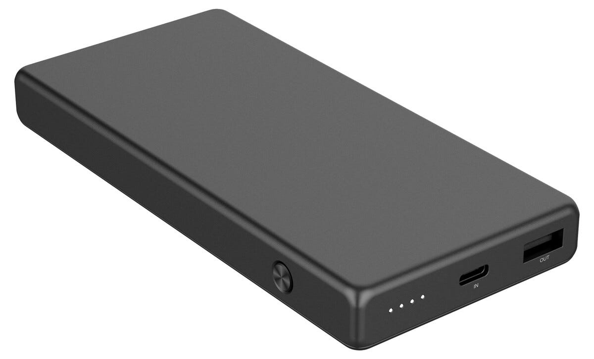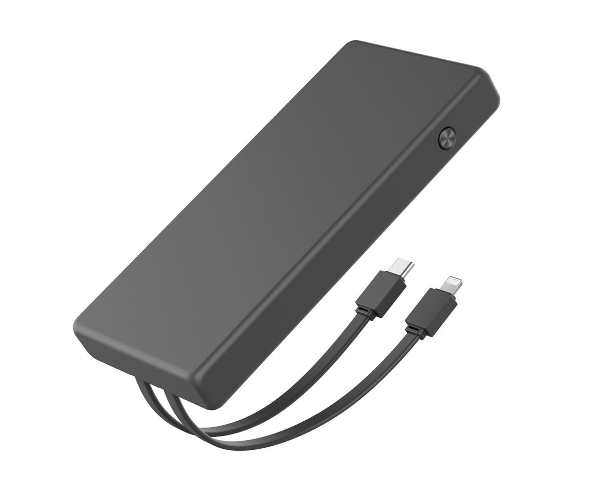 • Powerbank med integrerade USB-C och Lightning-kablar.