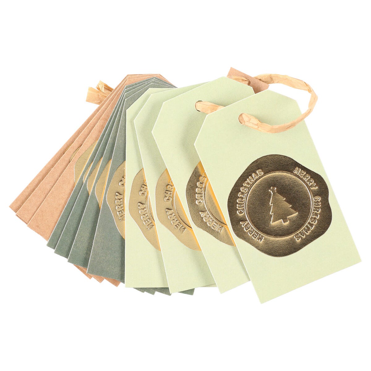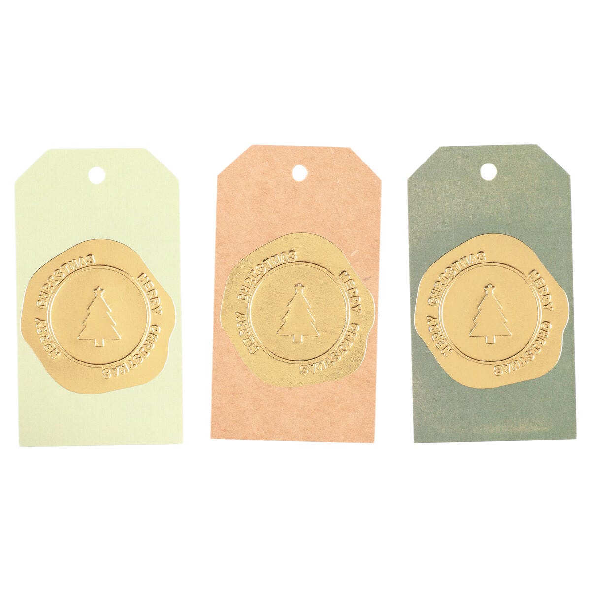 • 12 pappersetiketter i tre olika färger – sigill med julmotiv.