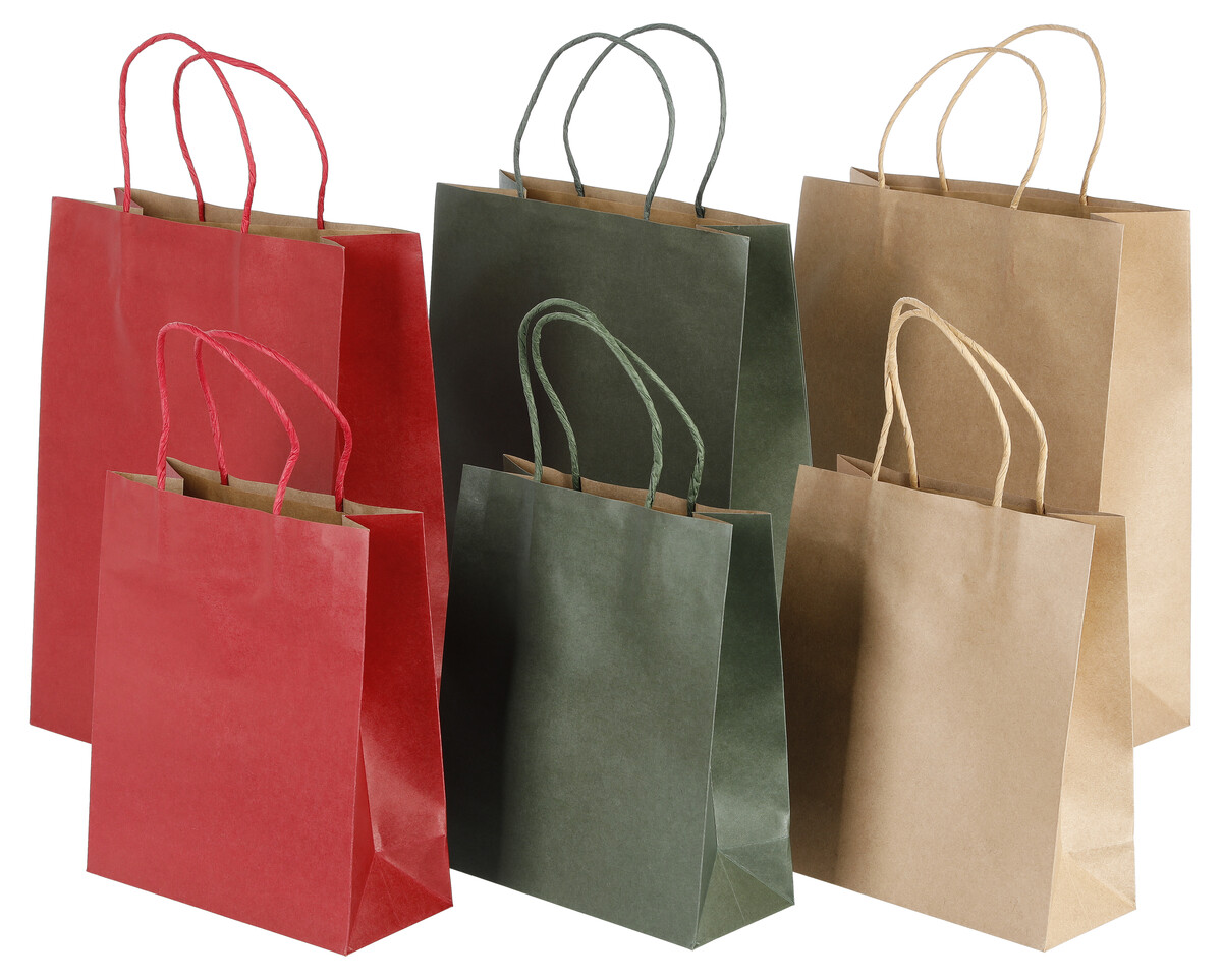 • Presentpåsar av FSC®-märkt papper med tvinnade handtag, 6-pack.