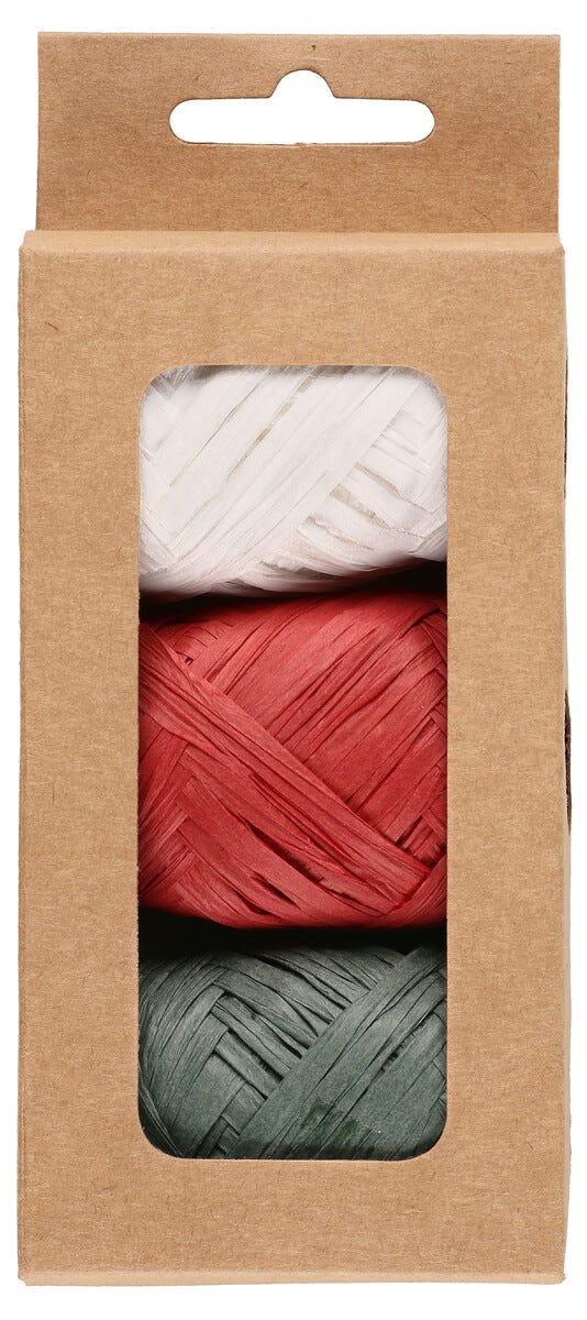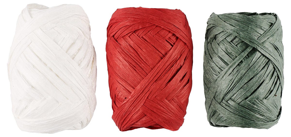 • 5 meter presentsnöre av träfiber i naturnära färger.