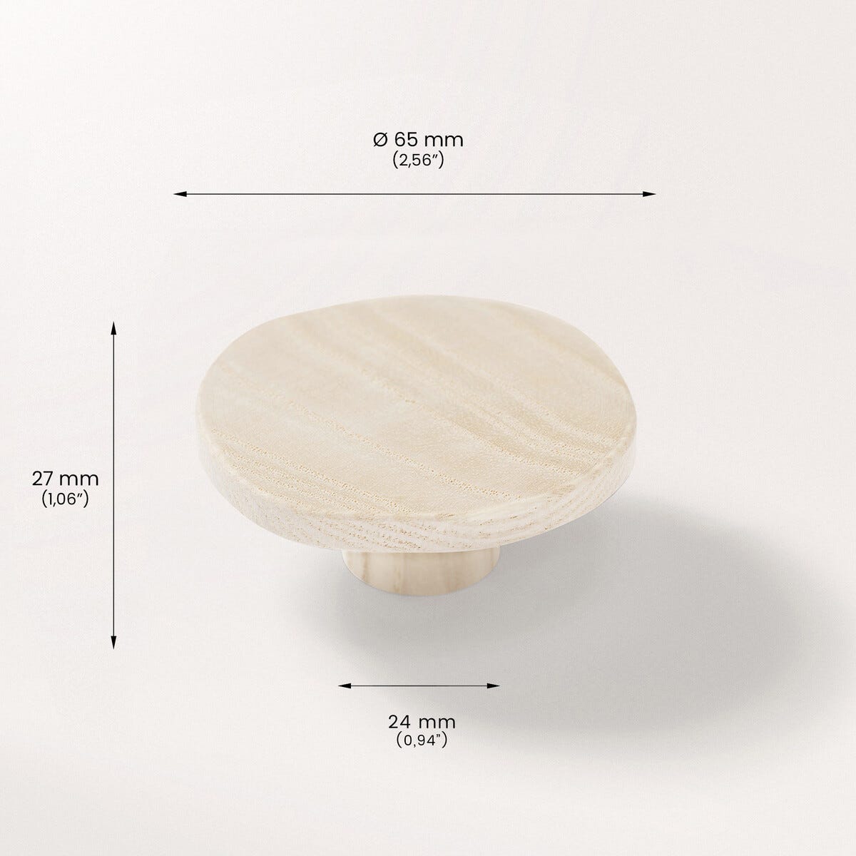 • Prettypegs Lilian Raw – rund, asymmetrisk möbelknopp av FSC®-märkt askträ.