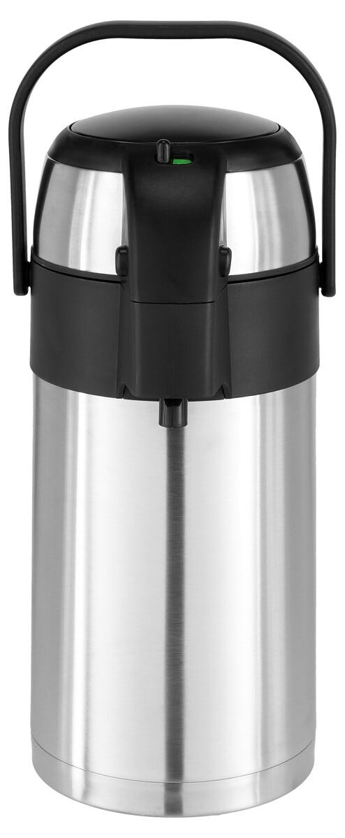 • Kaffetermos med pump – handtaget gör den lätt att flytta och ta med.