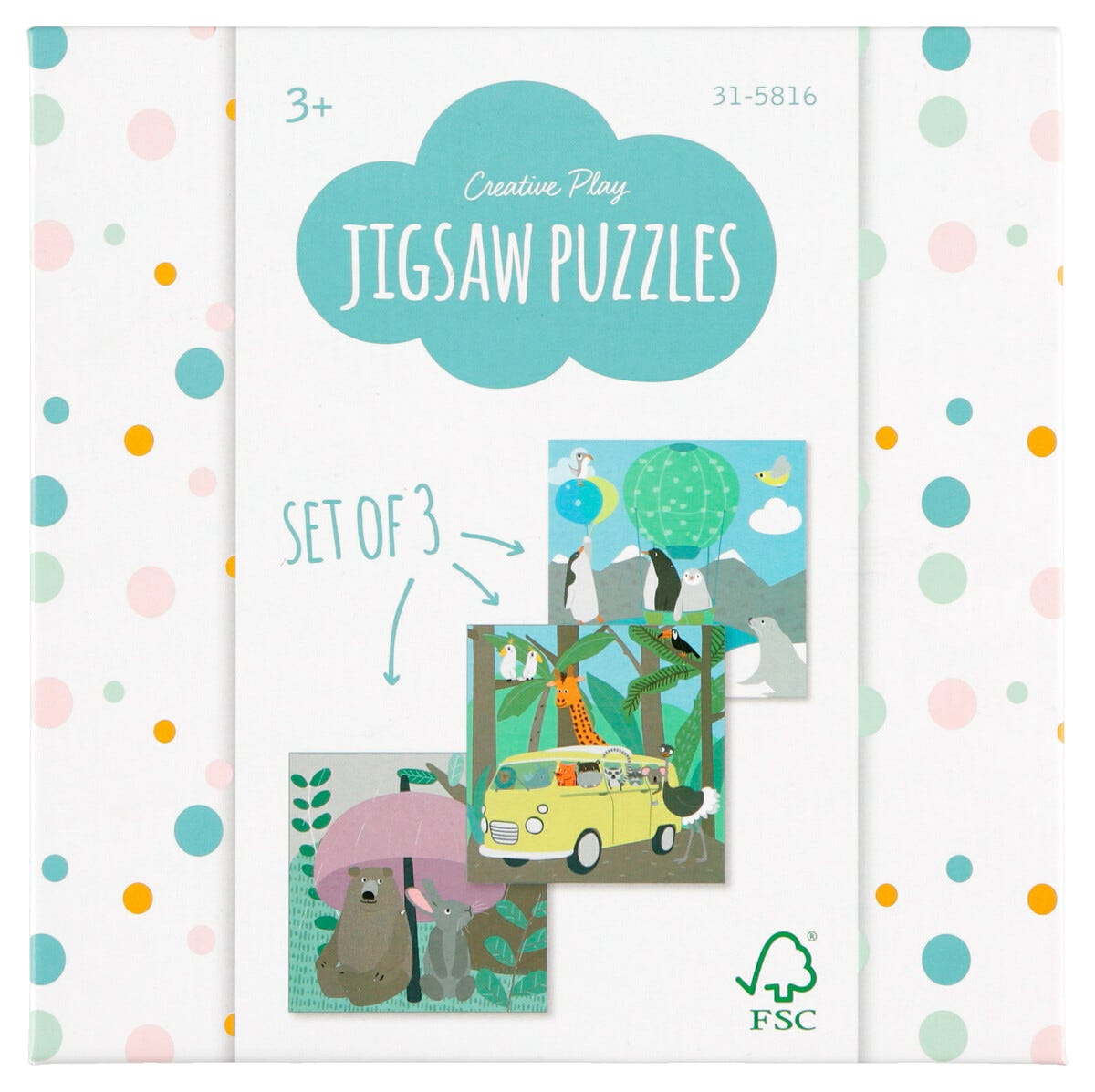 Pussel 3-pack djurmotiv